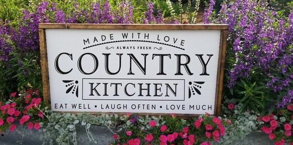 TOP Country Kitchen Signs Trend. Our 100% satisfaction guarantee will ensure you are happy with your art! Country kitchen style employs a focus on natural materials and fine craftsmanship in an effort to create a warm and comfortable kitchen design where guests will feel welcome and want to spend plenty of.